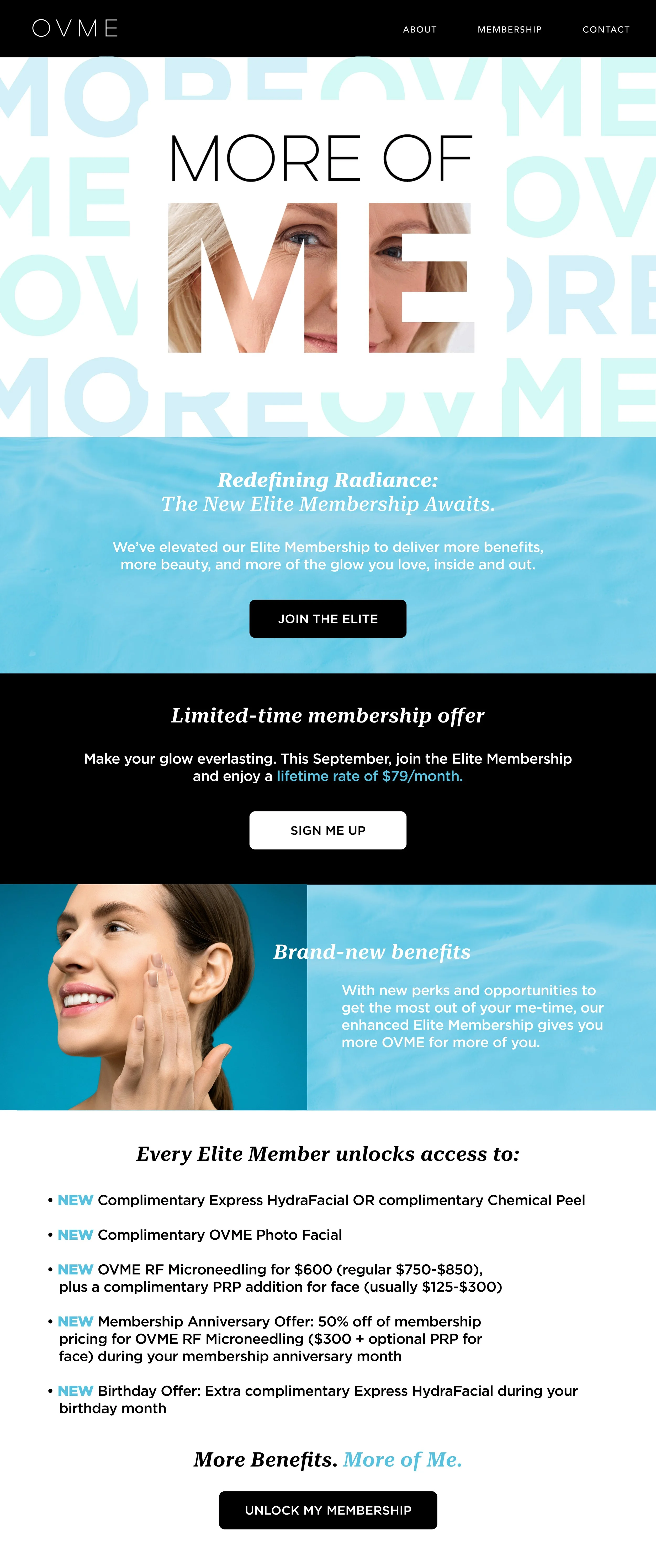 OVME expanded its membership program with new perks, and our team was challenged to launch a digital-first campaign that paired the announcement with a limited-time September enrollment discount. The initiative drove strong results and we enrolled 1,200+ new members in a single month.